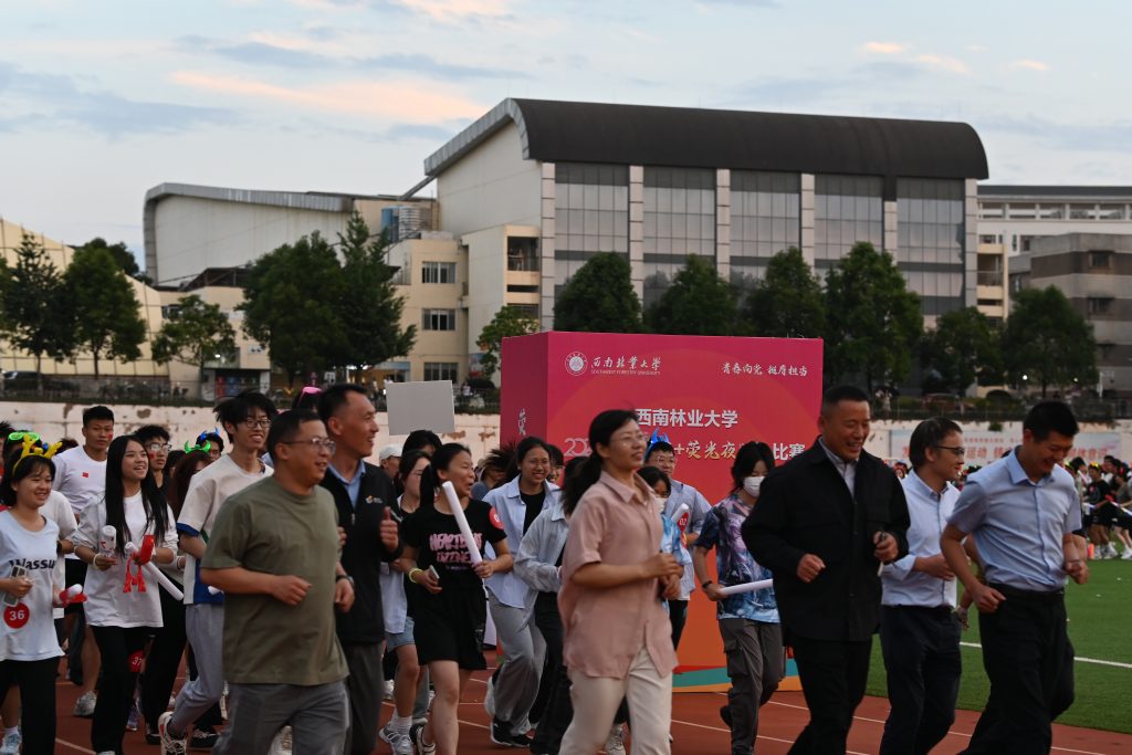 在夜色、荧光与汗水的交织中,教师和员工们身戴荧光设备、挥舞着荧光棒,环绕校园热情地奔跑,在运动中学习党务知识、在奔跑中感受快乐,构建了师生融乐的和谐校园氛围。
