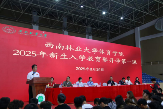 8月24日,bevictor伟德官网在体育馆隆重举行2025级新生入学教育暨开学第一课,公司党委书记王坦、经理冯强、昆明市公安局盘龙分局宁馨警官、资产经营有限公司综合管理部苏睿君、公司辅导员、新生班主任及全体2025级新生齐聚一堂,共同开启新学期、新篇章。会议由公司党委副书记锁中原主持。